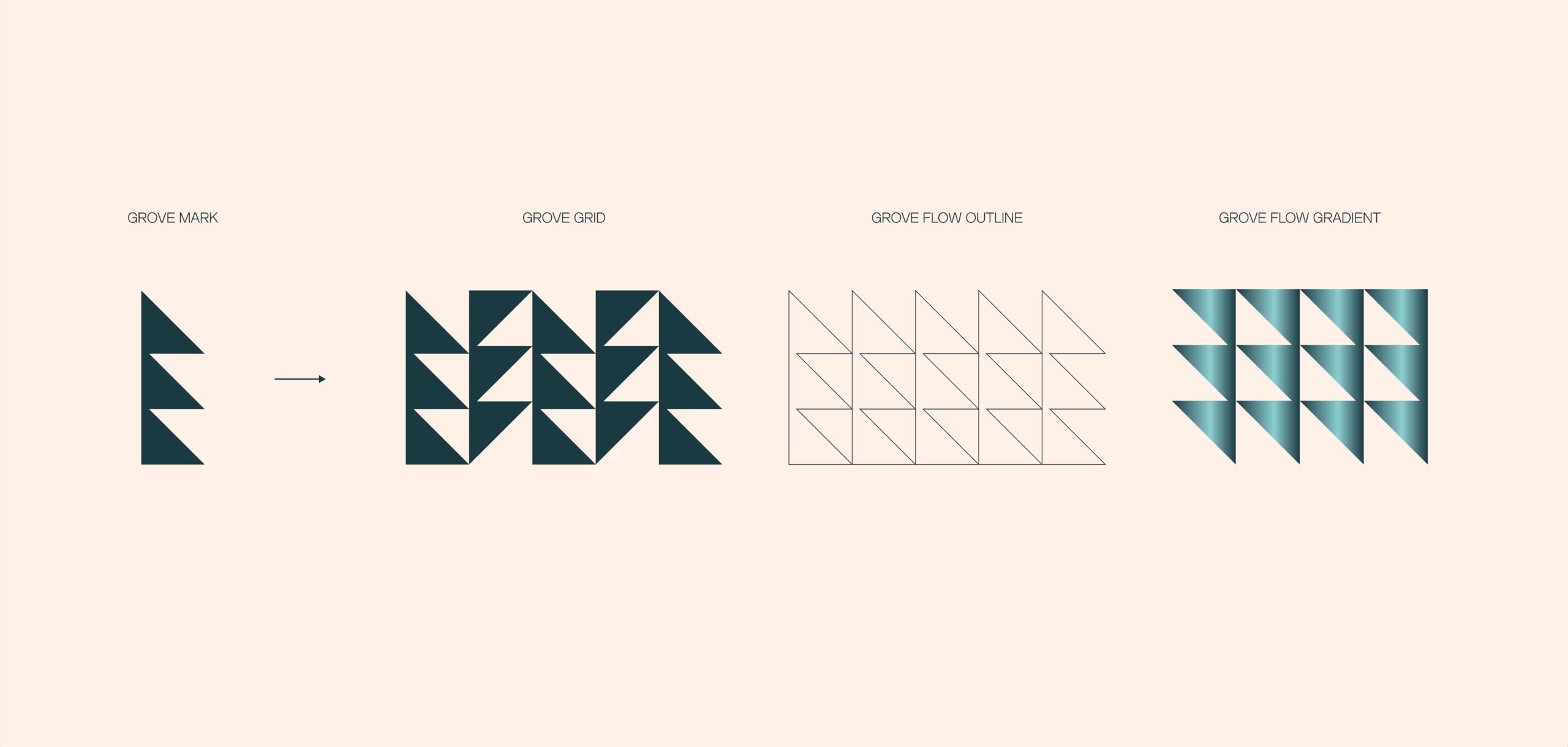I built a modern, modular design system around the Grove Mark, a stylized tree of three stacked triangles representing Strategic, Credit, and Opportunity Partners. It’s open form signals collaborative strength. The system extends into Grove Grid for structure and Grove Flow for motion, plus a refined green-teal palette and editorial clarity. Based on my strategy and competitive analysis, I wrote a direct, founder-friendly voice that avoids industry clichés and carries the line “Rooted in Venture, Cultivating Opportunity.”